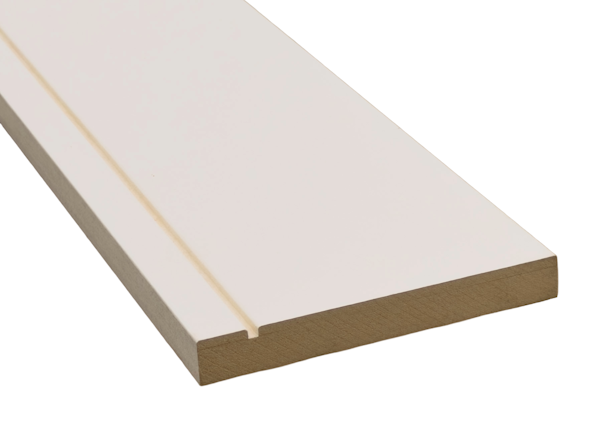 Grooved Contemporary MDF Skirting is the go-to for a clean, modern look.It is 18mm in thickness and 145mm wide and has a 5mm groove approximately 20mm from the top. It is primed white ready for painting. We can also provide a matching architrave.